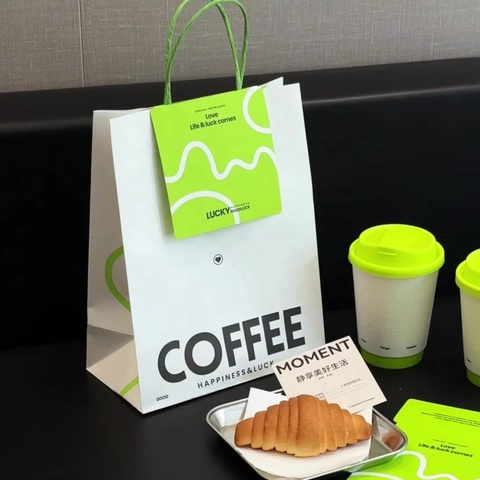 Envasado de café, té de la leche, bebidas, bolsas de mano para llevar, bolsas de tazas dobles, bolsas de papel Kraft al por mayor